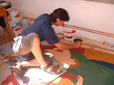 hat das Format von 550 cm x 300 cm. Insgesamt sind 5 Segmente zu bewältigen. Die Schwierigkeit: wie kann man die Schnittstellen kontrollieren?