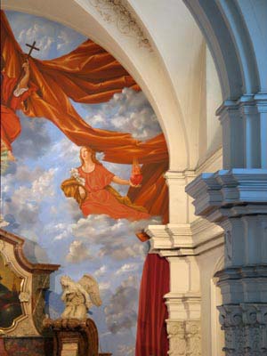 Weisse Lilie und das flammende Herz, Attribute, die die göttliche Tugend der Liebe repräsentieren..